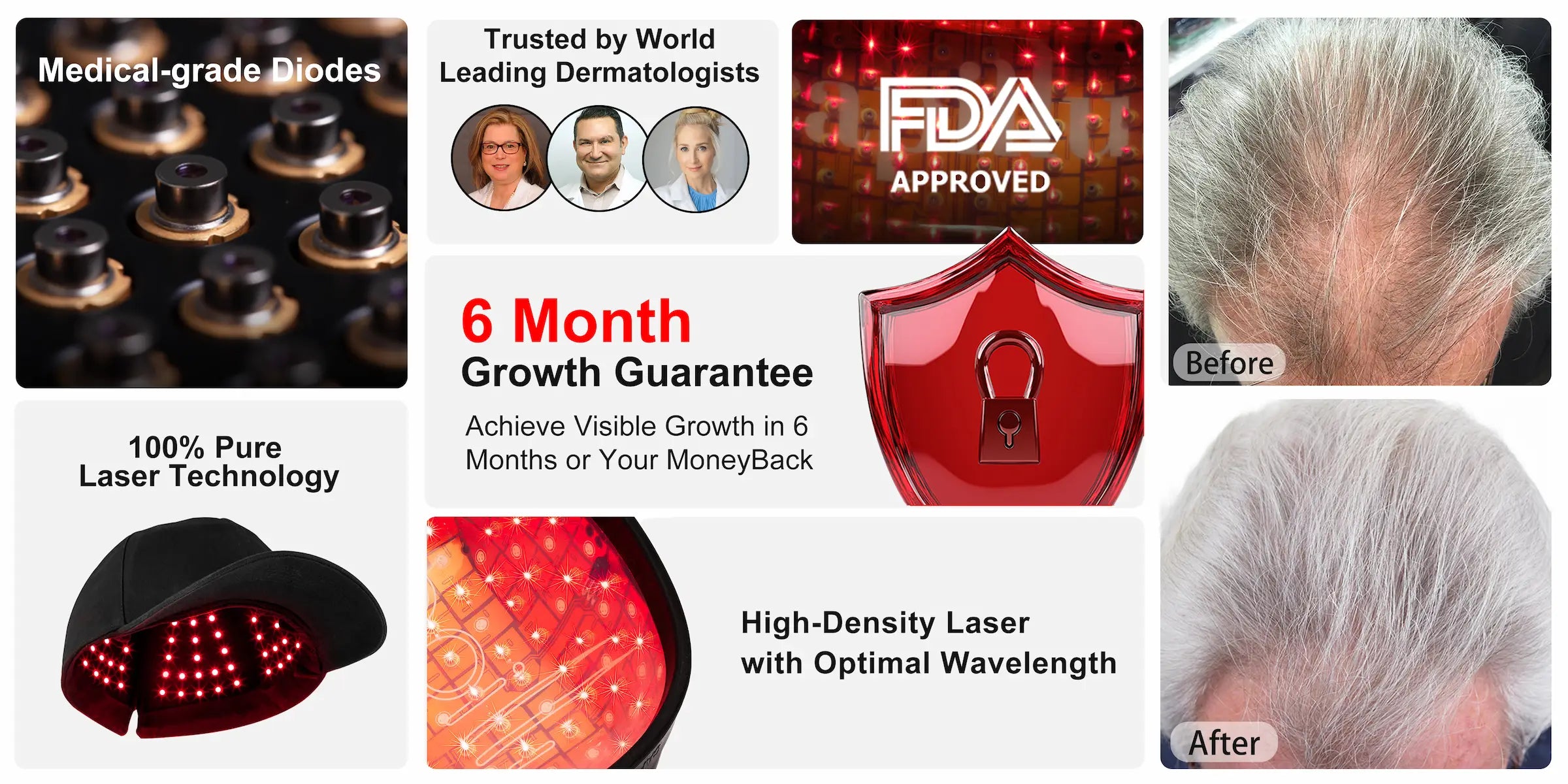 We are confident in the effectiveness of Lazorian’s laser caps, which is why we offer a 100% Growth Guarantee.